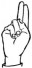 На ћирилици написано ДАВИД БАДРИЋ састоји се из 11 слова [?]. Исписано ћириличном једноручном азбуком за глувонеме: